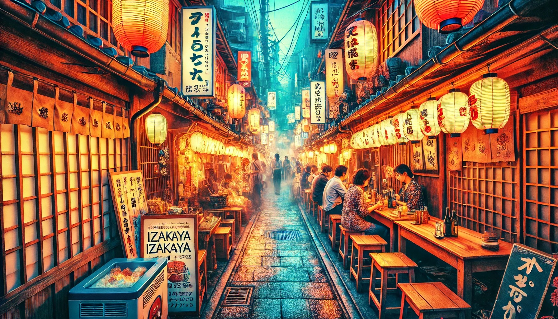 작은 골목길을 따라 형성된 이자카야에서 따뜻한 분위기를 즐기며,